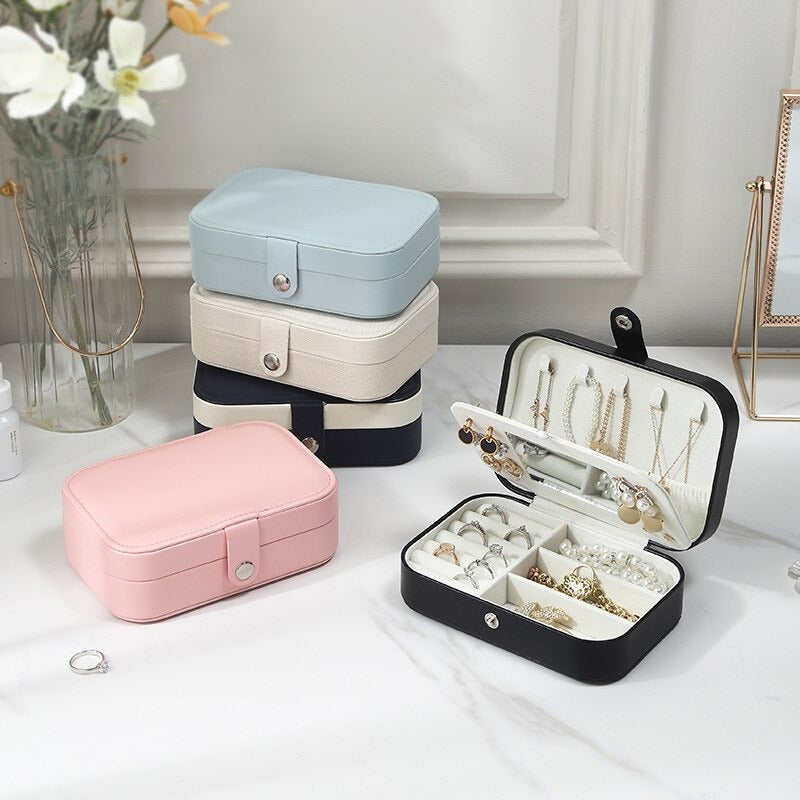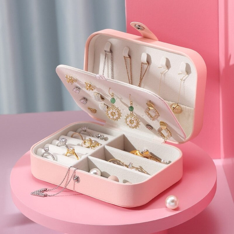 Vårt smykkeskrin i skinn for reise er ikke bare en oppbevaringsløsning, men en følgesvenn som gir trygghet på dine eventyr. Ta med deg essensen av luksus og orden hvor enn du drar, og hold hvert smykke like glitrende som øyeblikkene du skaper.