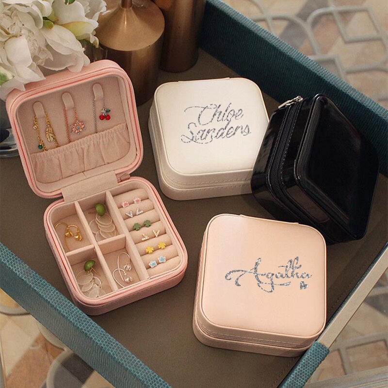 Dette smykkeskrinet med navn er ikke bare en oppbevaringsløsning; det er en fortelling om dine mest kjære eiendeler. Hver gang du åpner lokket, blir du møtt av en velorganisert scene der smykkene dine ligger klare til bruk. Den tilpassede inskripsjonen gir hvert skrin en følelse av eierskap og kjærlighet. Med rom for ringer, øredobber, armbånd og mer, sørger dette skrin for at alt har sin plass, noe som gjør det enkelt å finne smykkene dine når du trenger dem.
